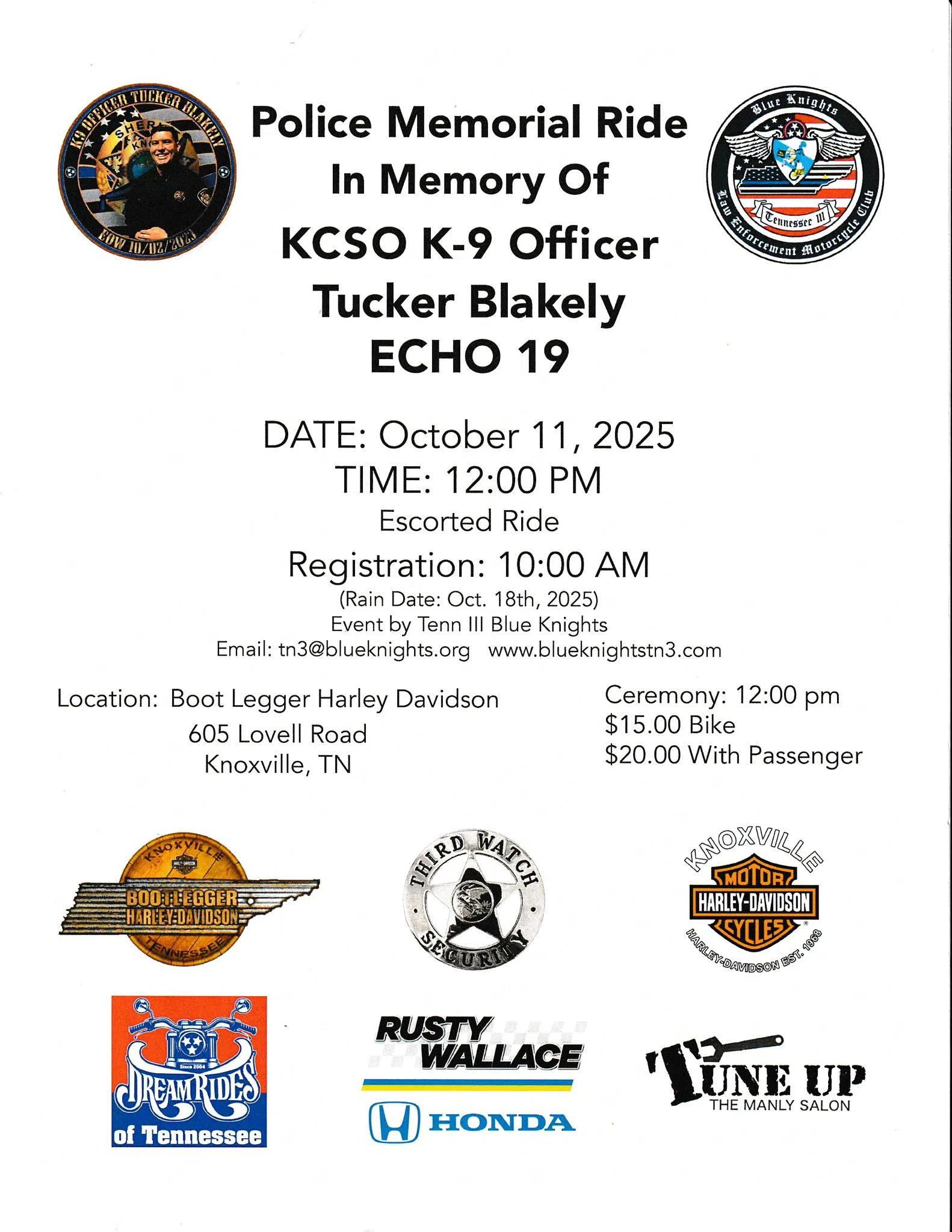 Police Memorial Ride In Memory Of KCSO K-9 Officer Tucker Blakely ECHO 19